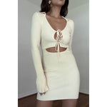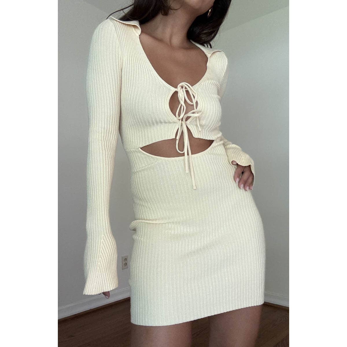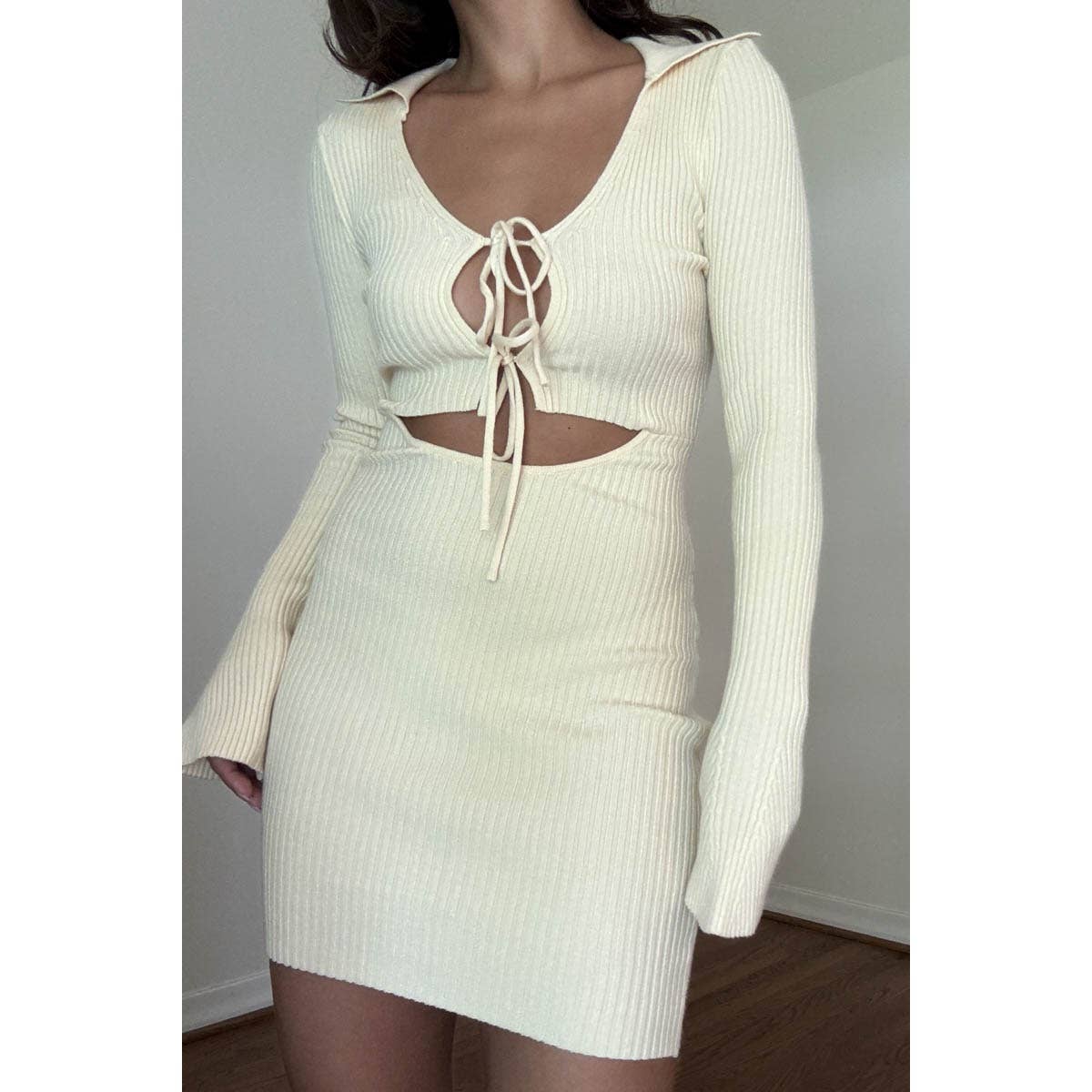 Unit price / perChic ribbed knit dress with stylish cutouts and ties.