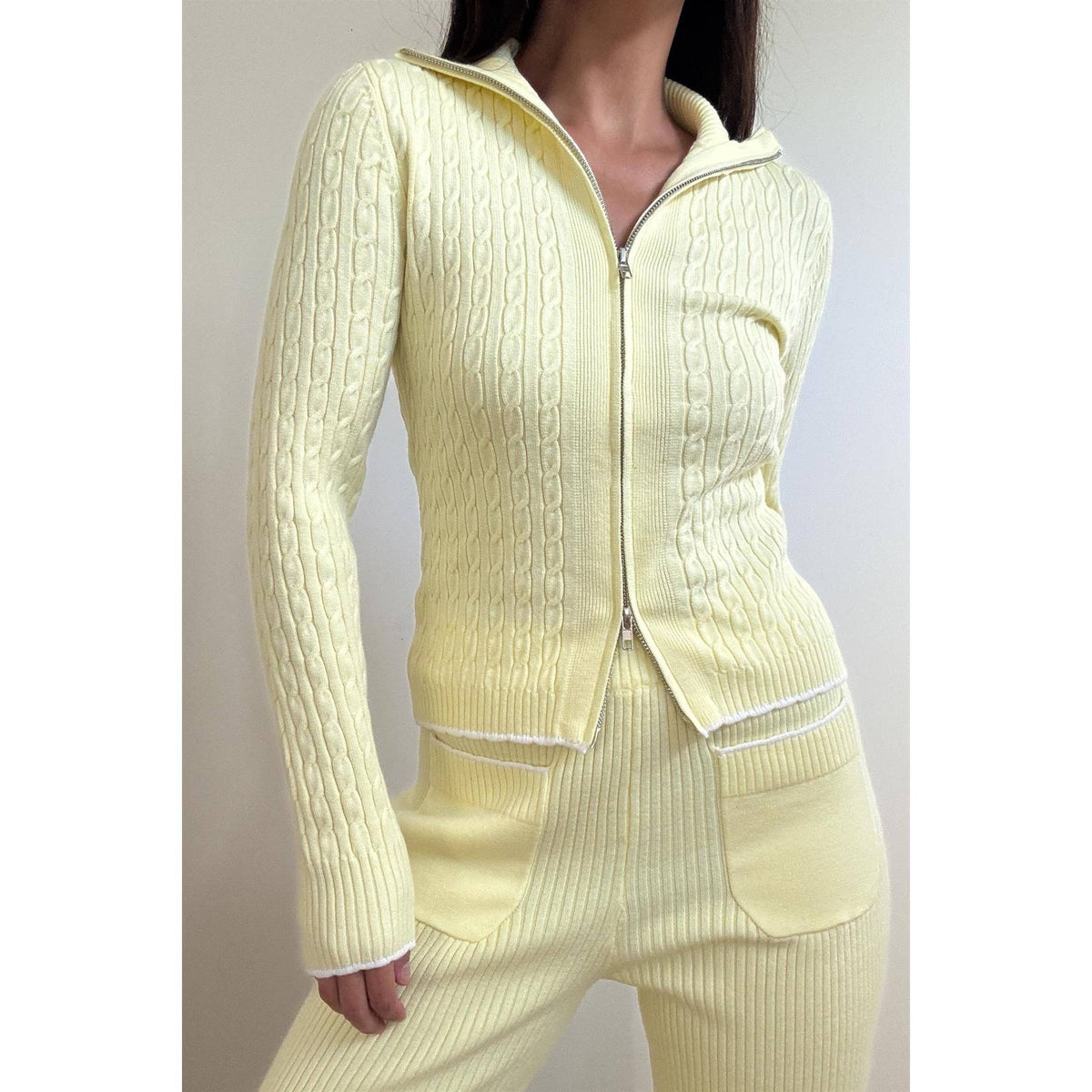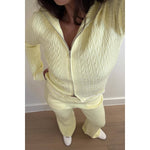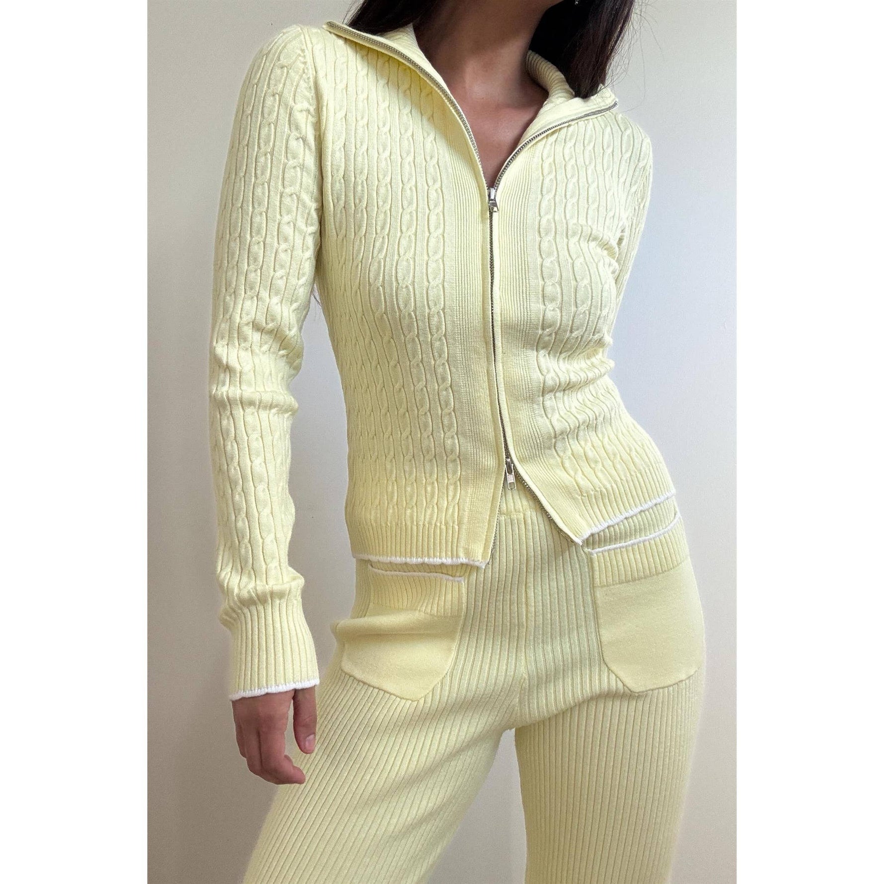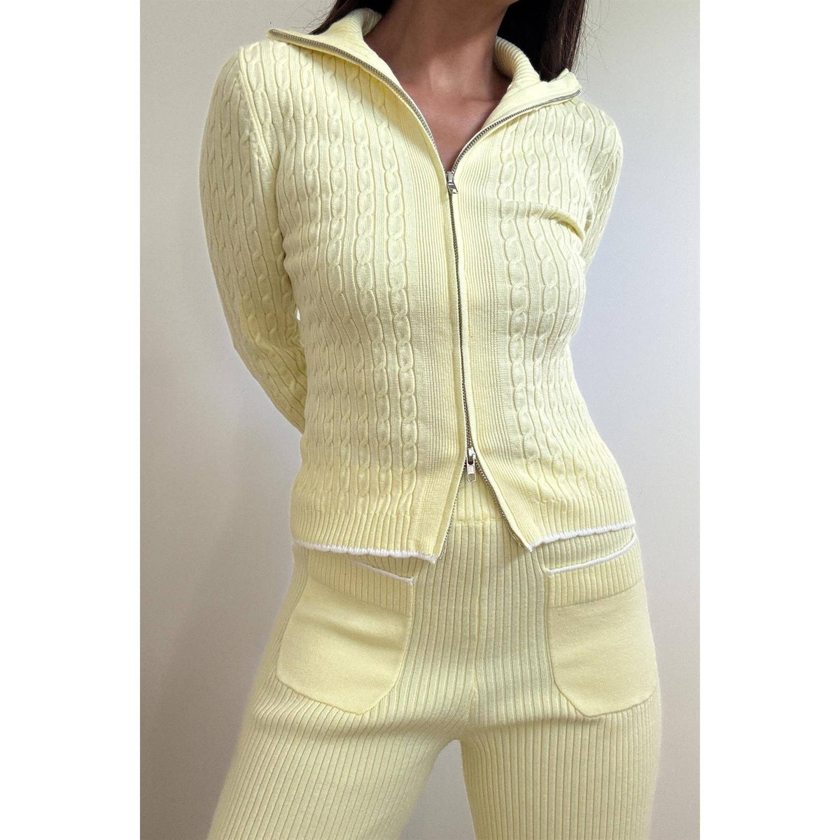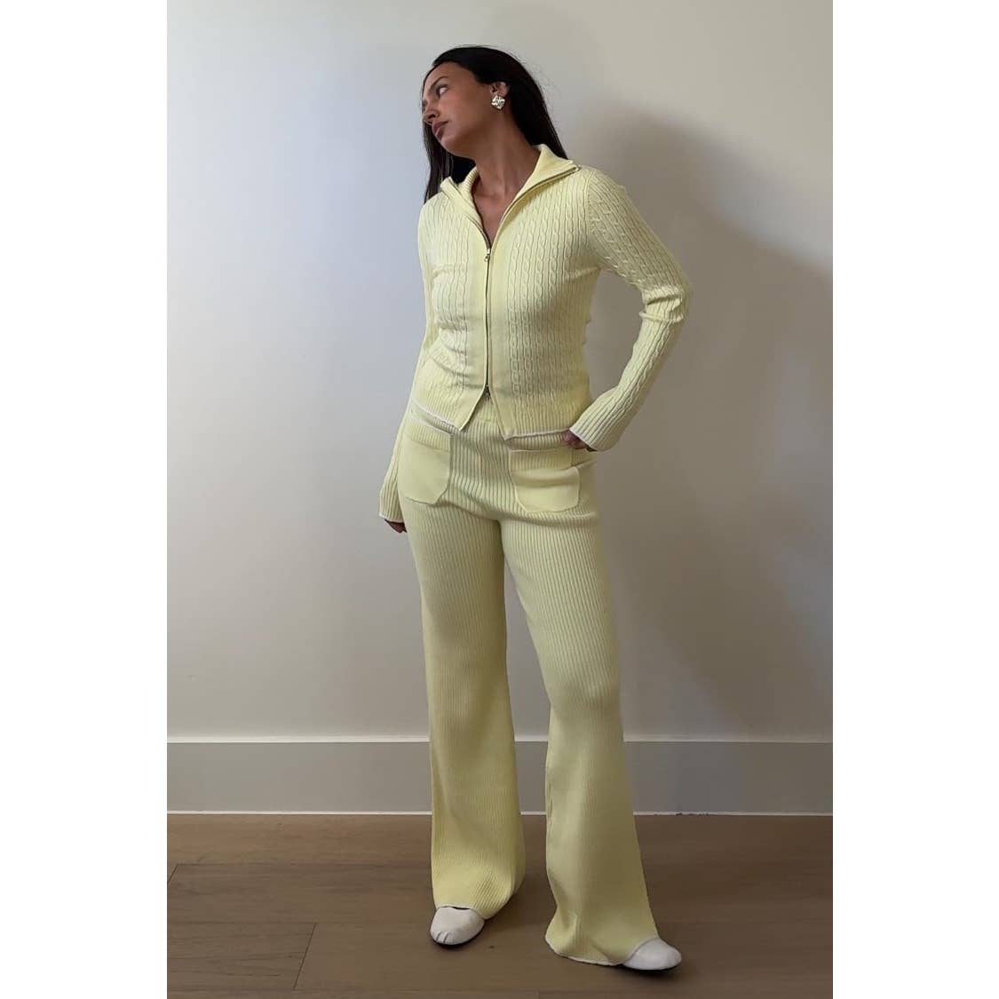 2 Piece Knit Zip-up Top & Flared Leg Pants Sets