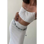 Unit price / perChic crop top and midi skirt set with elegant embellishments.
