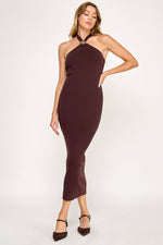 Gilt Maxi Dress - Gold Trim Halter Tie Back Open Shoulder