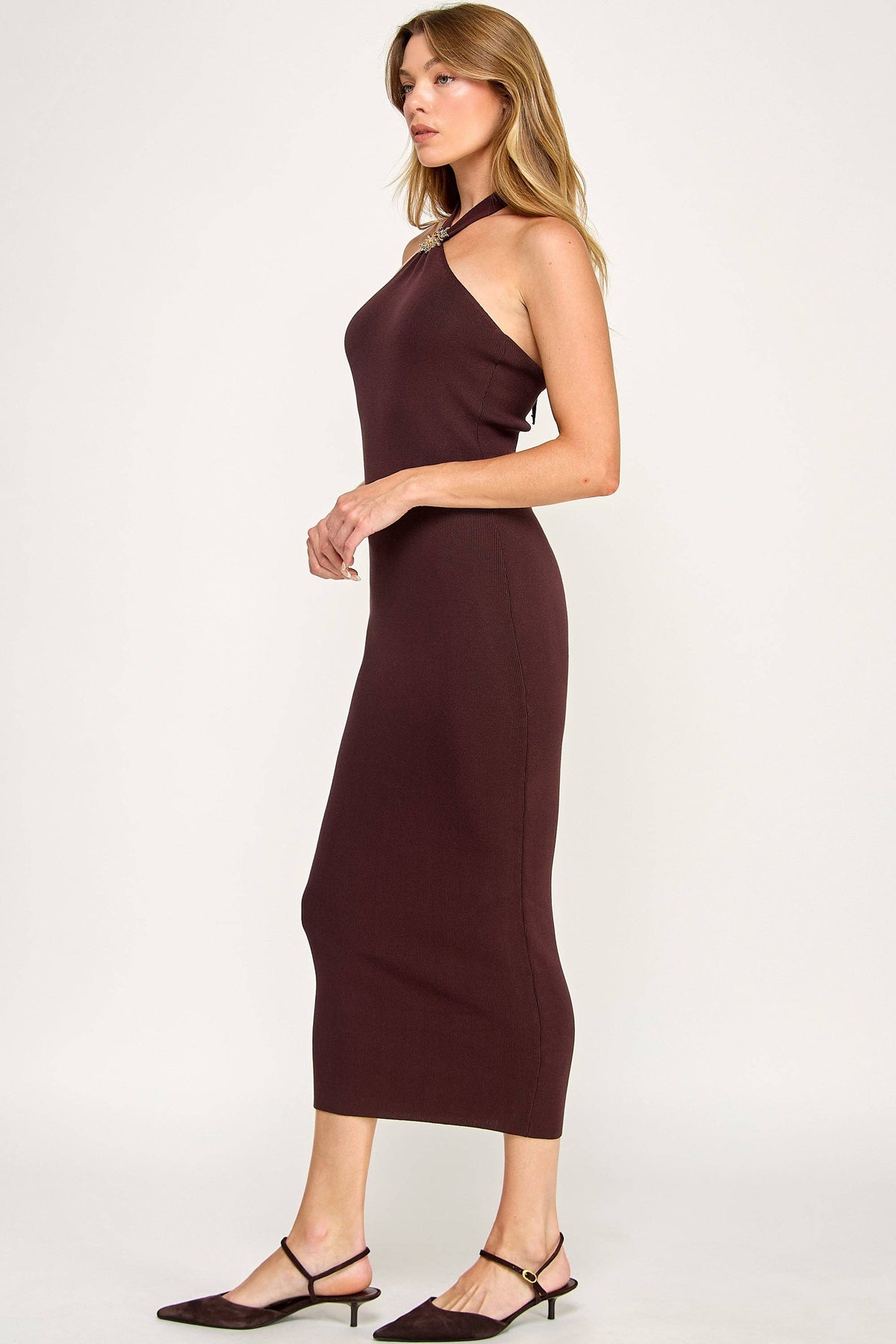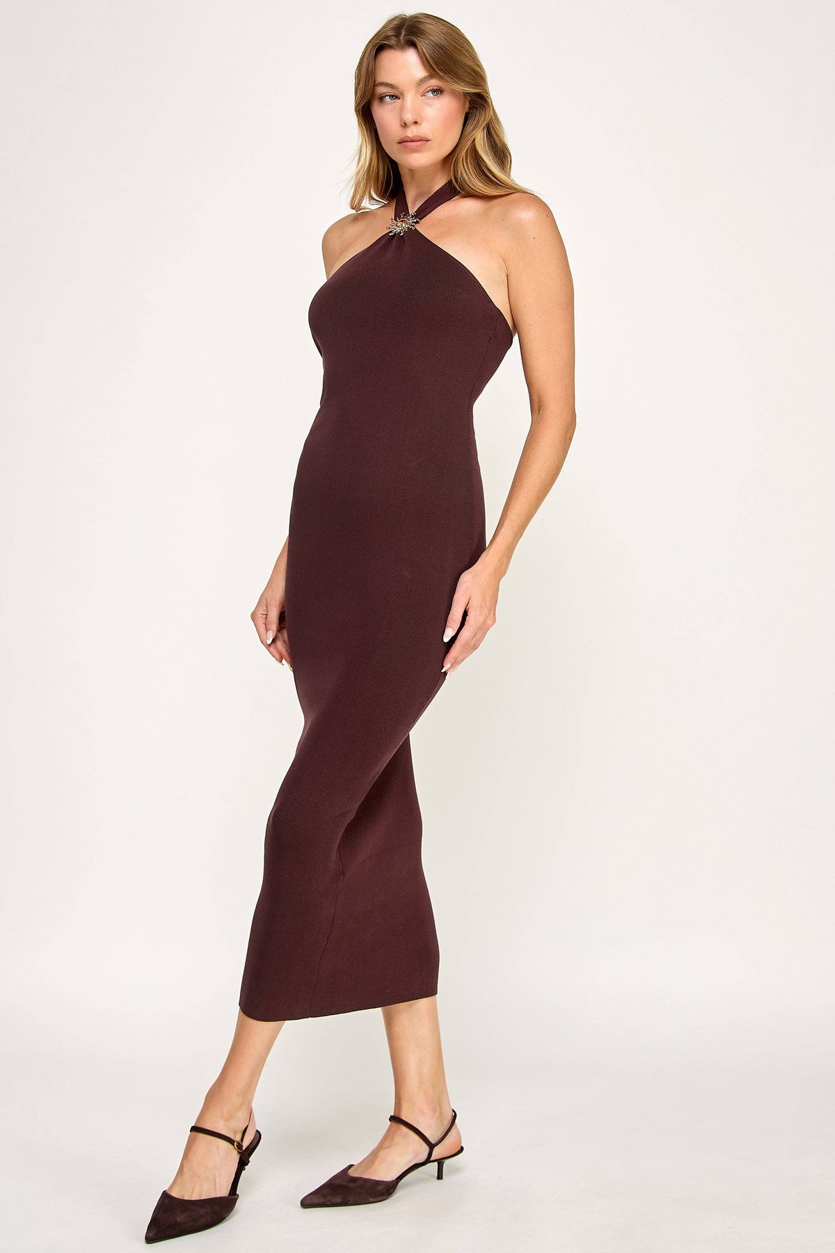 Unit price / perSleek and refined sweater knit maxi dress with embellishments.