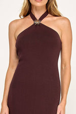 - Halter neckline with jeweled accent detail