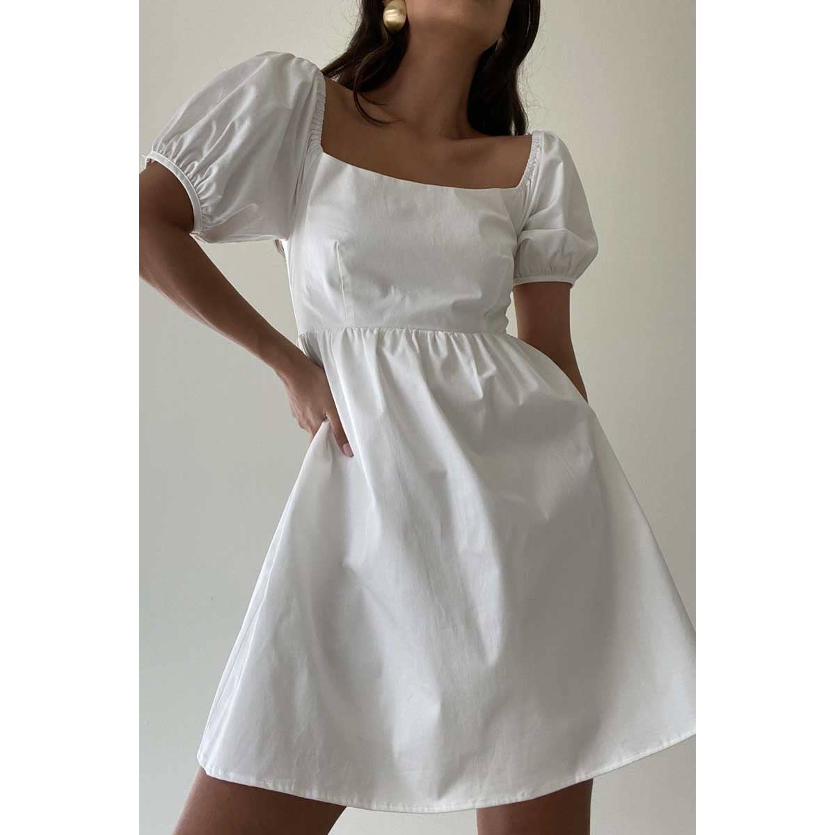 Elegant mini dress with a playful balloon skirt design.