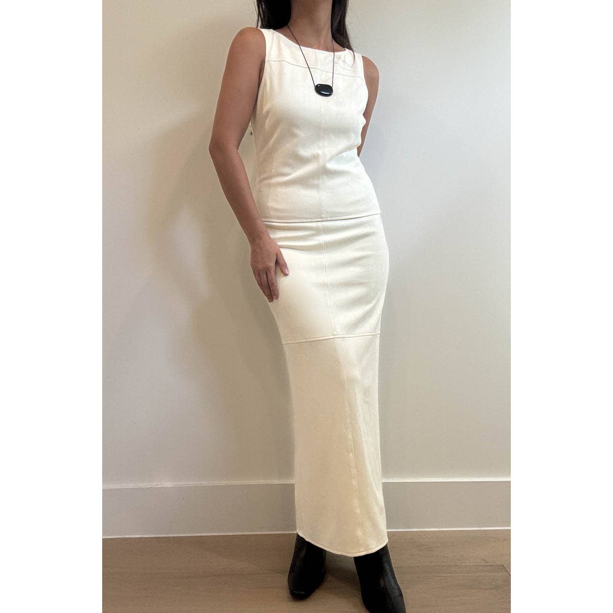 Faux Suede Sleeveless Top W/ Maxi Skirt