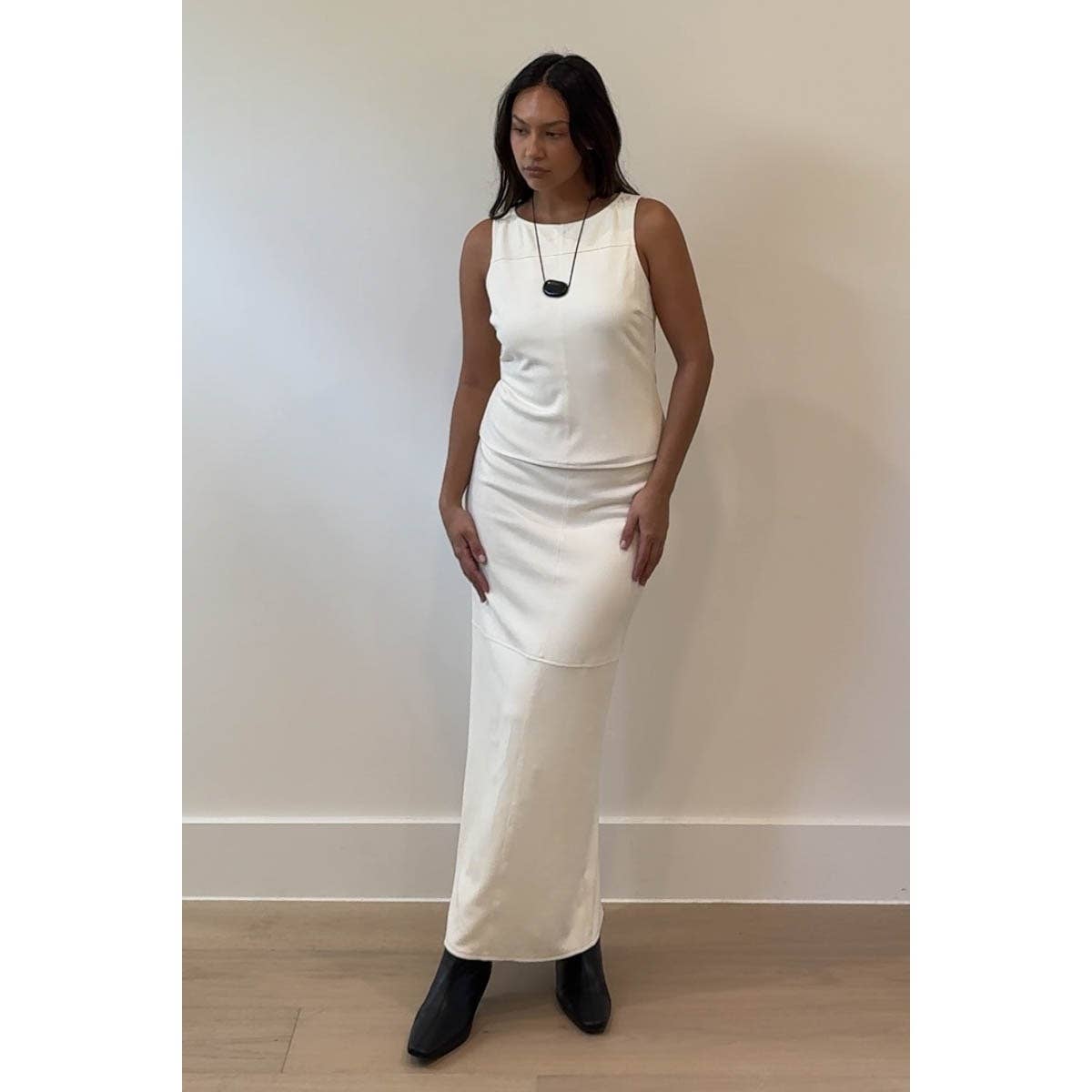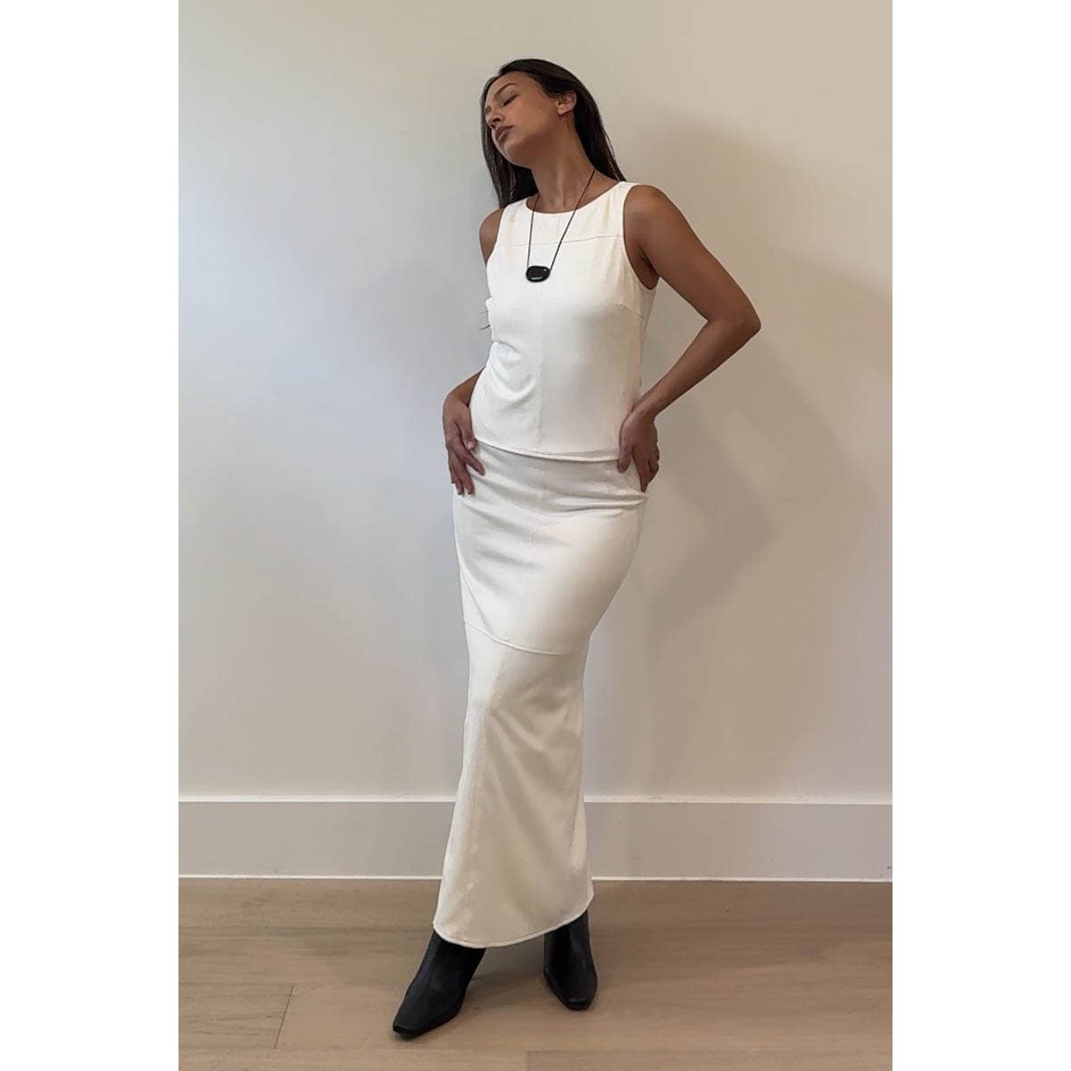 Unit price / perChic and elegant sleeveless top and pencil maxi skirt.