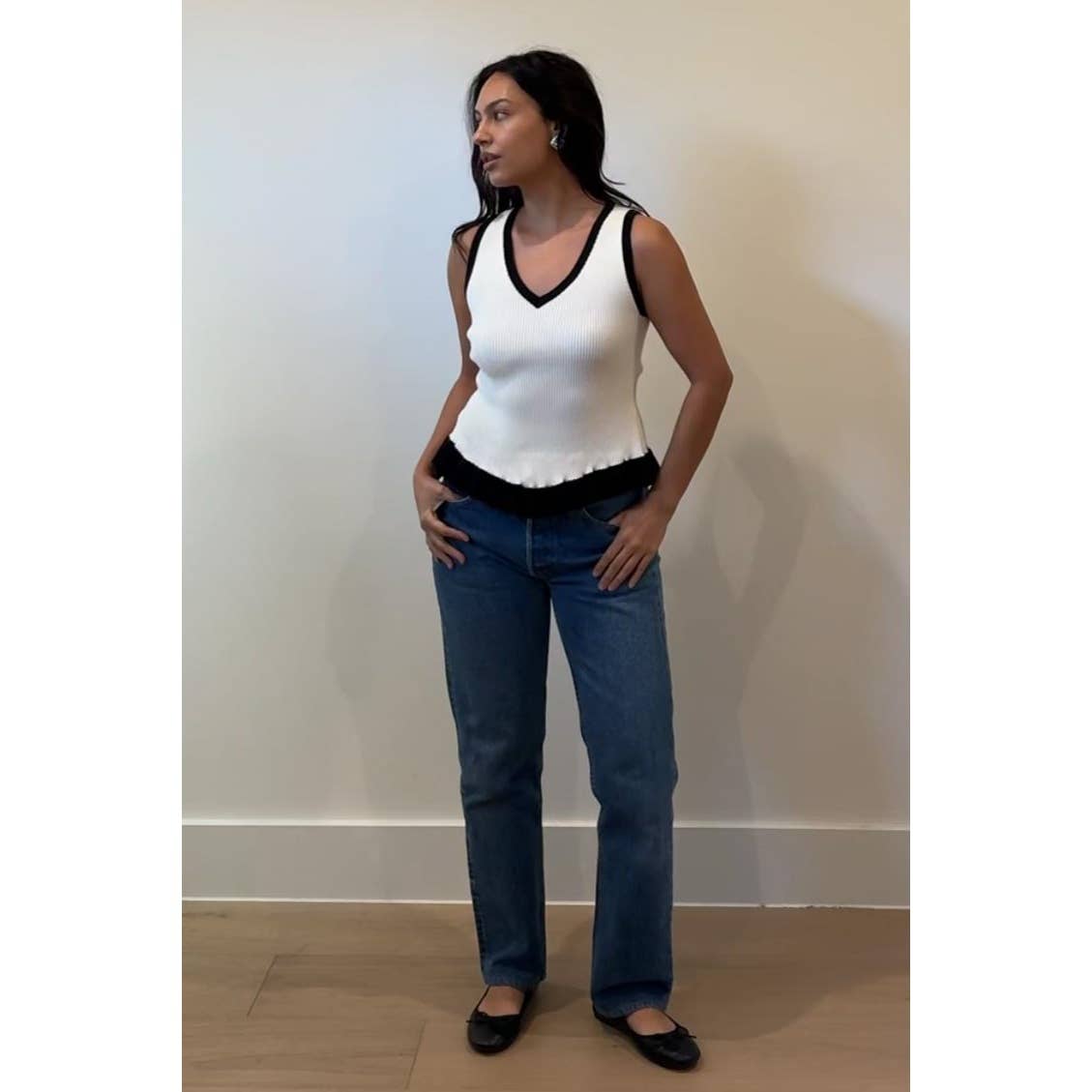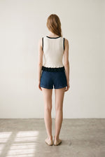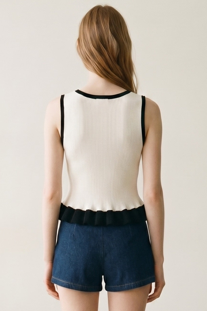 Unit price / perStylish sleeveless top with chic ruffle accents.
