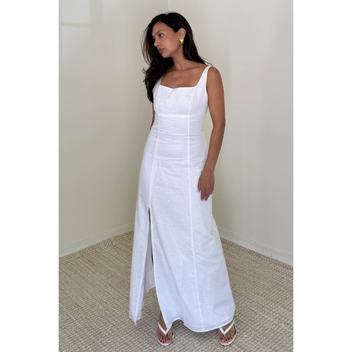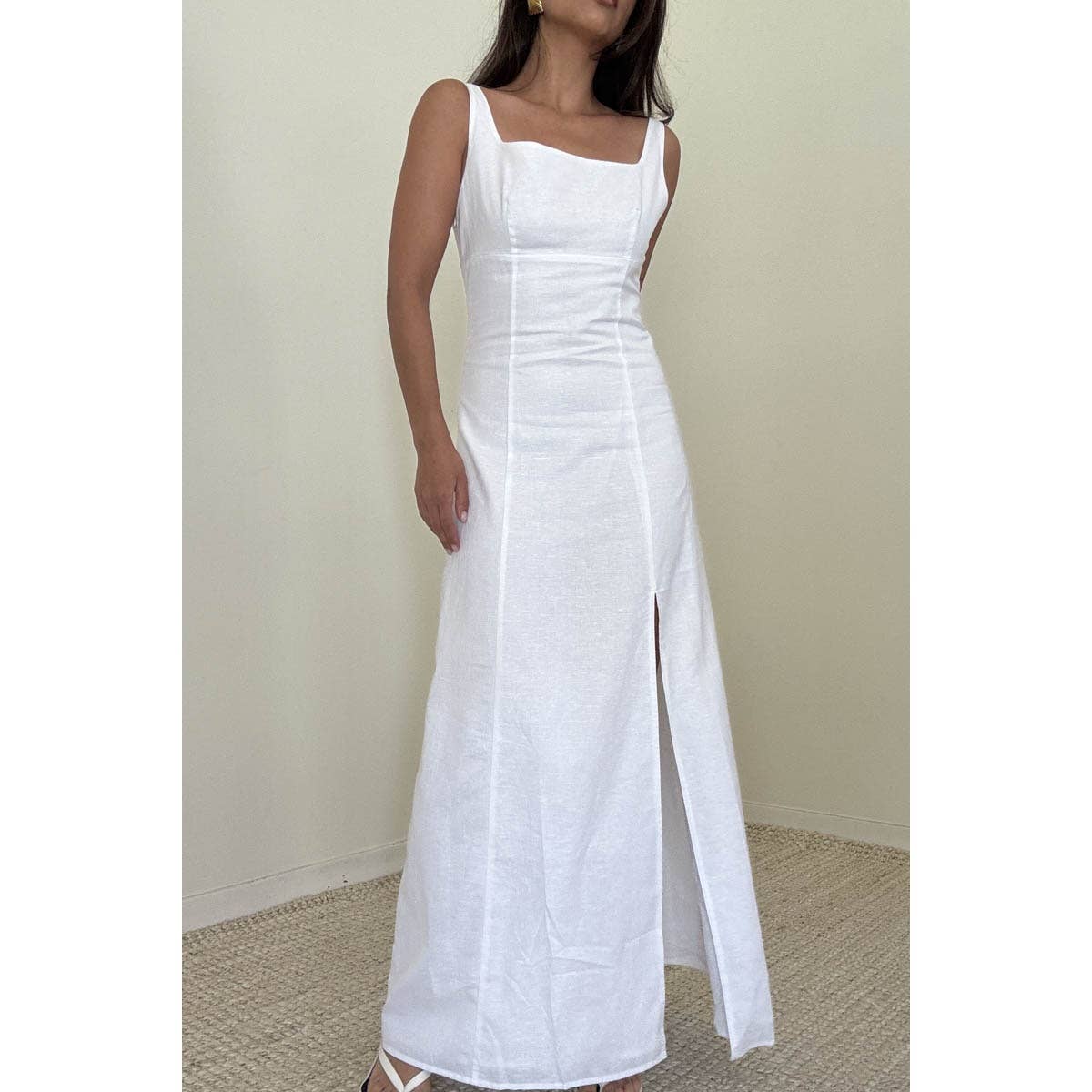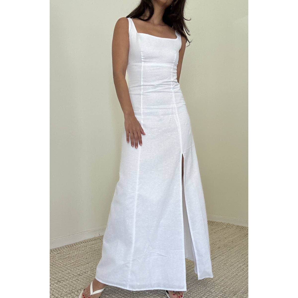 Cotton Linen Sleeveless Maxi Slit Dress
