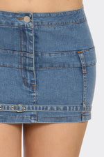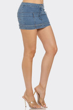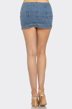 Denim Mini Skirt - Mini Belt Buckle Stretch Jean