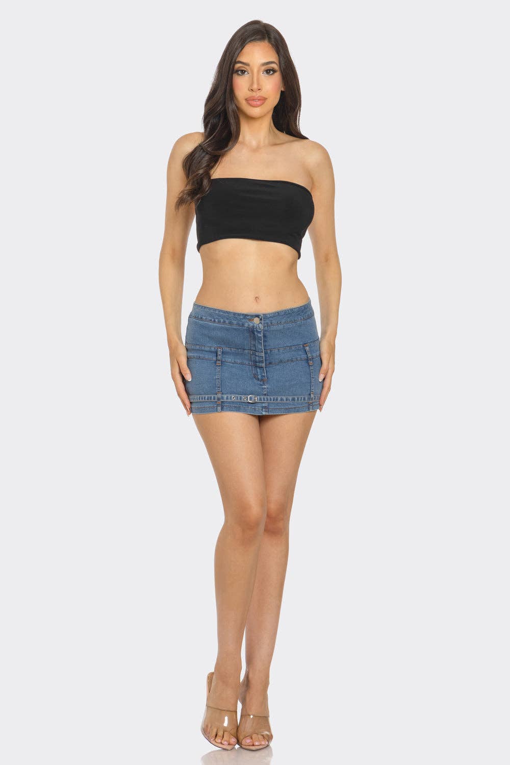Unit price / perClassic denim mini skirt with a modern belt detail.