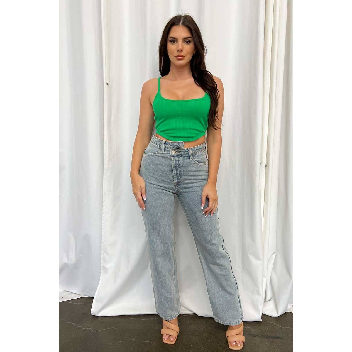 Unit price / perVibrant green cami top with a casual, fitted style.