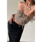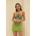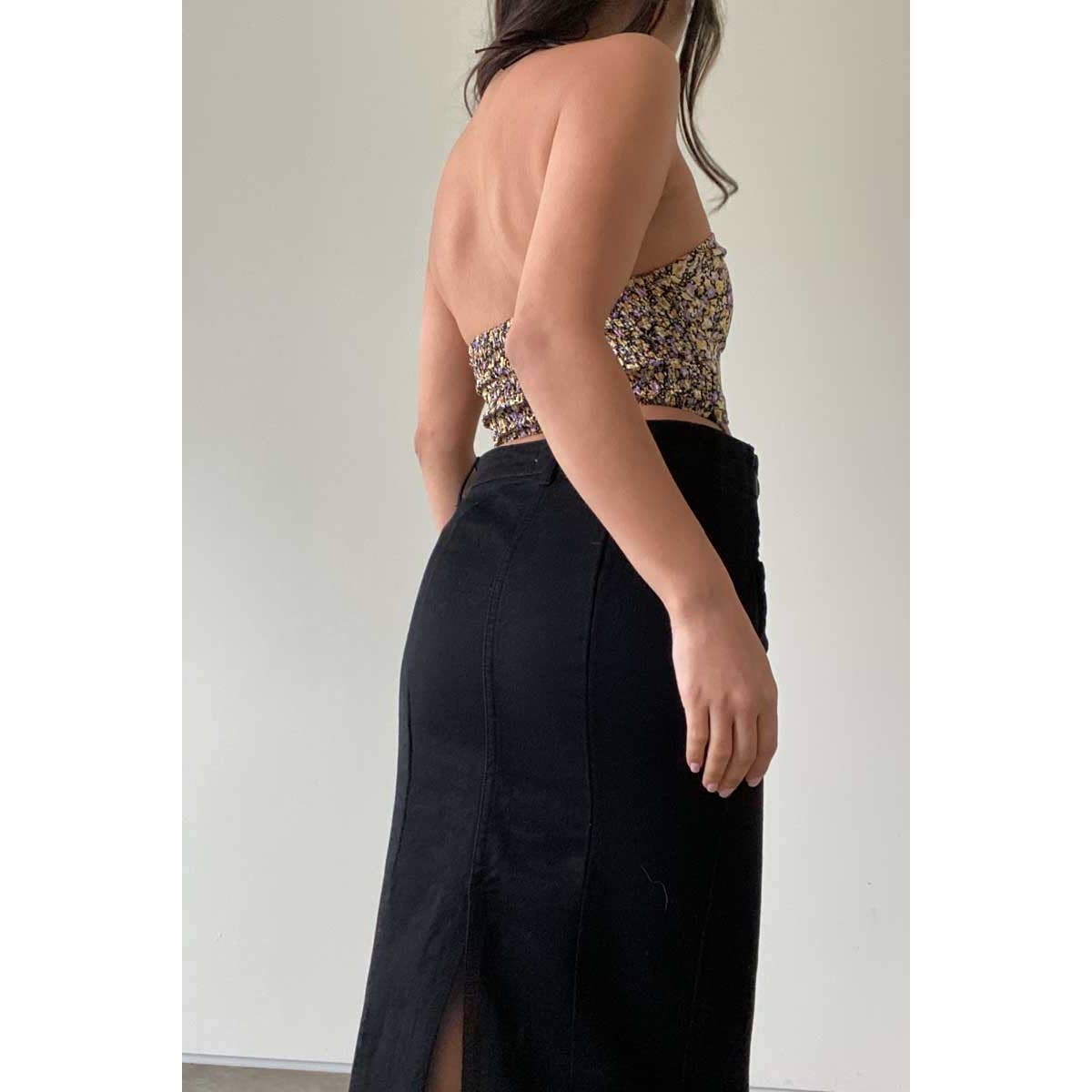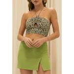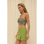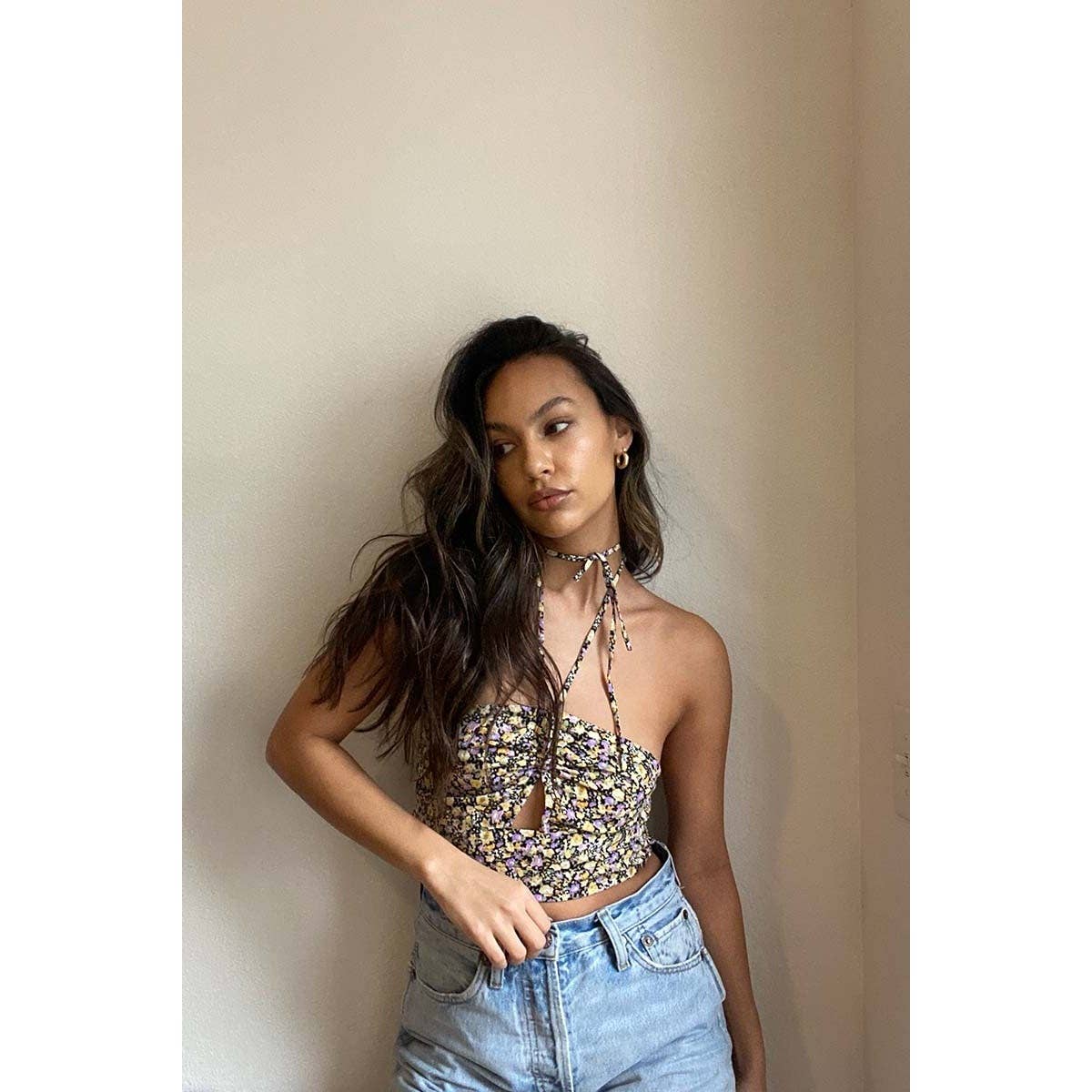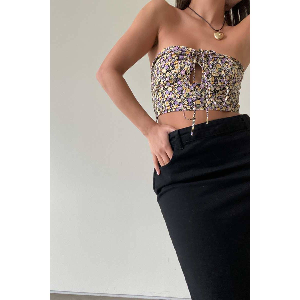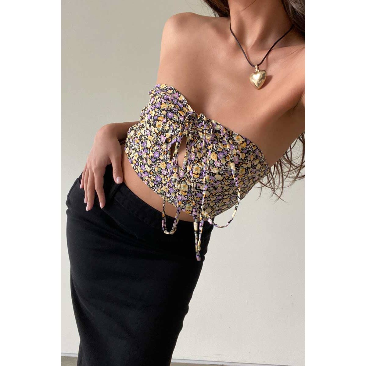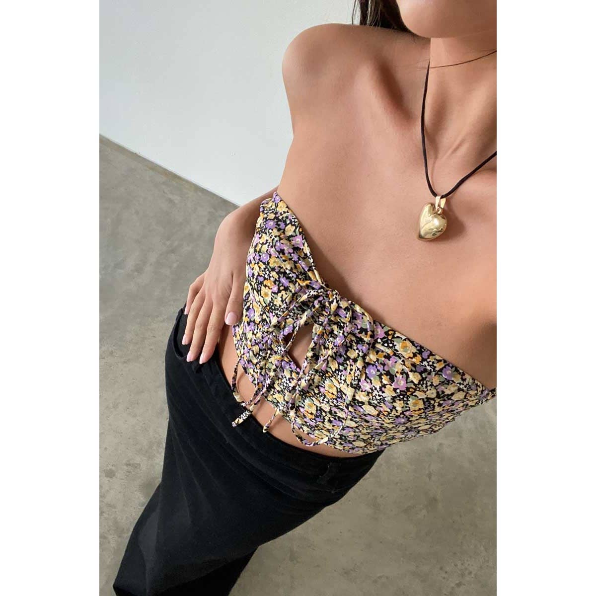 Unit price / perFloral tube top with cinched neck tie detail for a chic look.