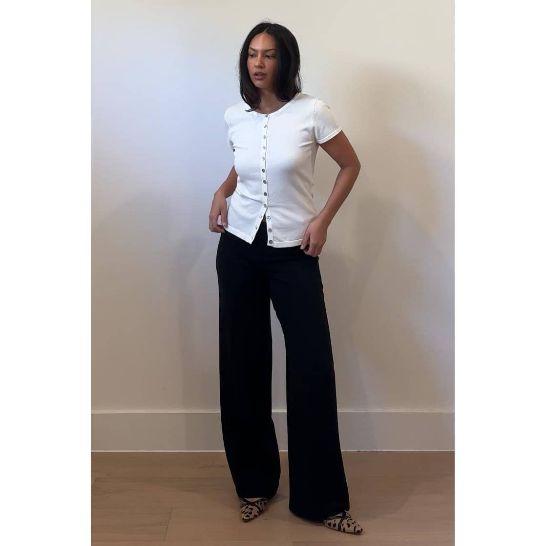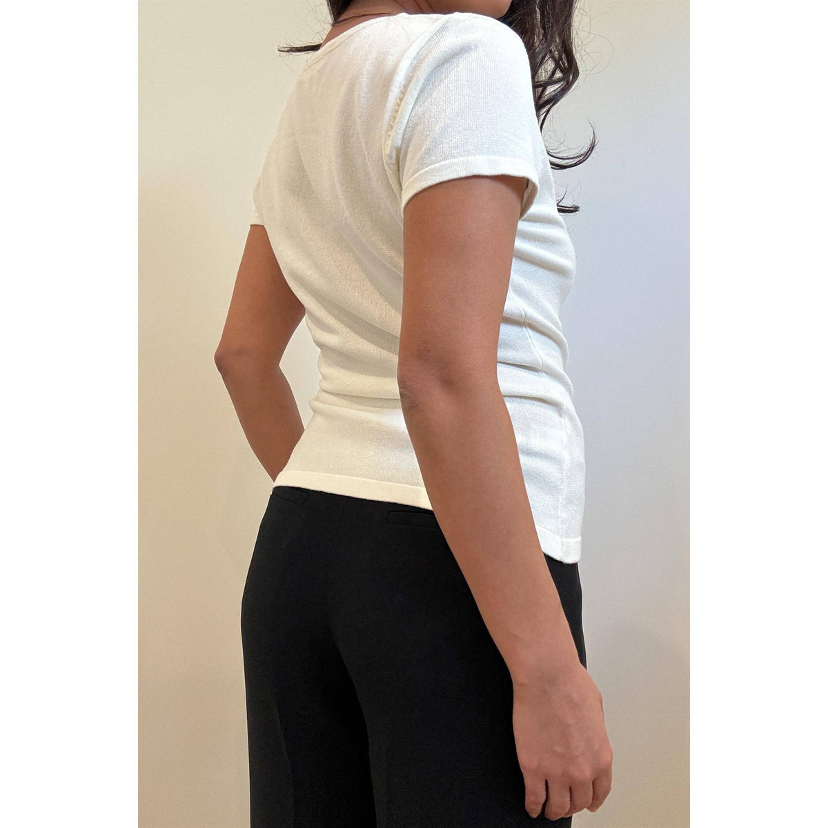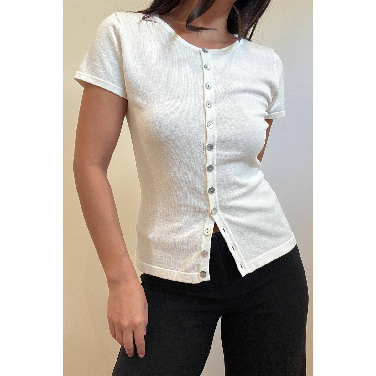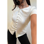 Knit Button Down Cap Sleeve Slim Fit Basic Top