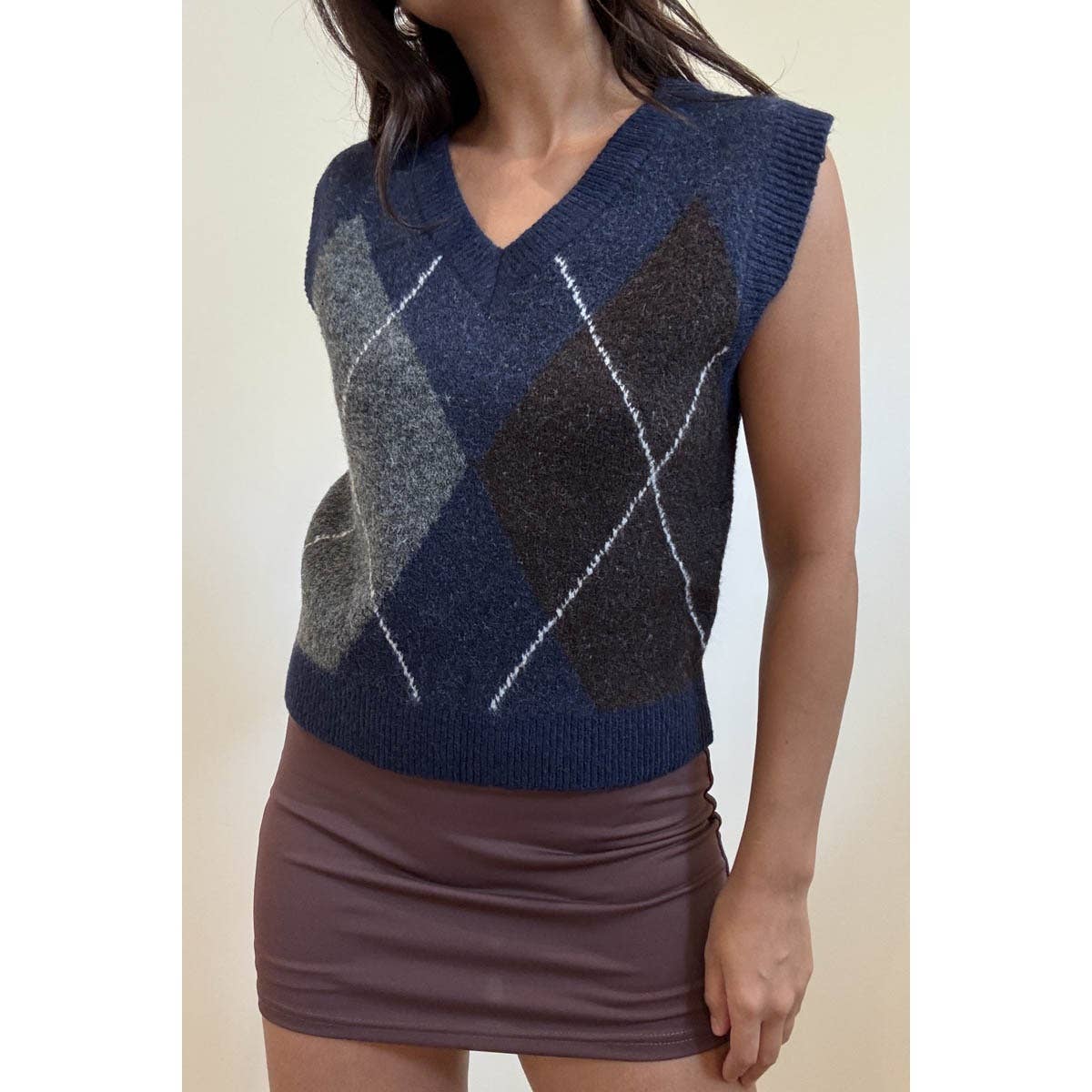 Precio unitario / porVintage-inspired sleeveless top with argyle pattern.