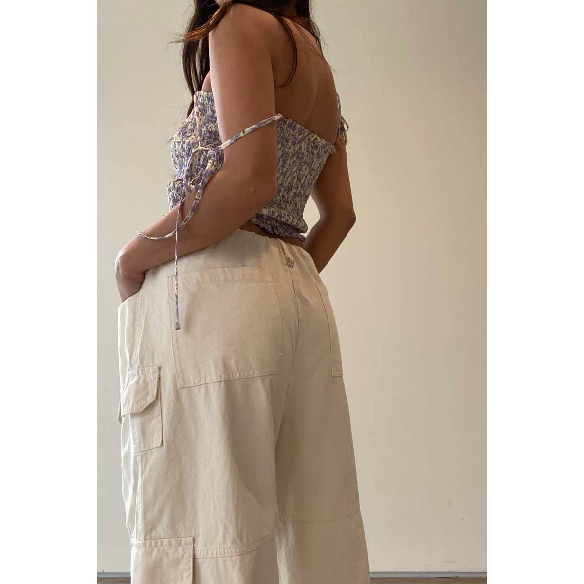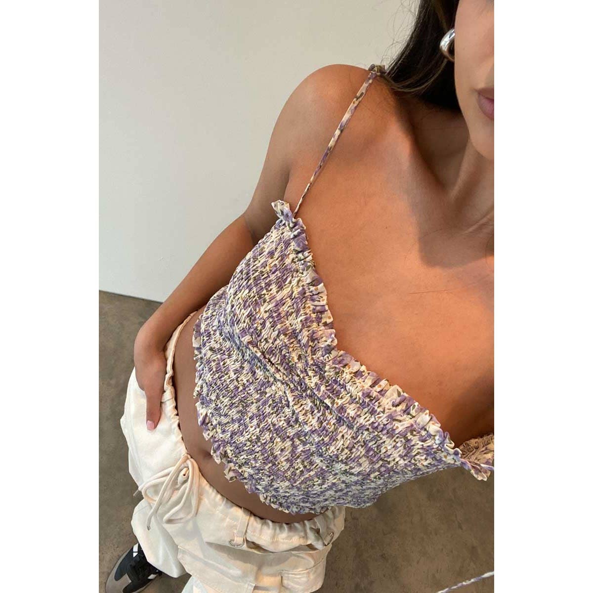 Precio unitario / porChic floral crop top with spaghetti straps for a summer vibe.
