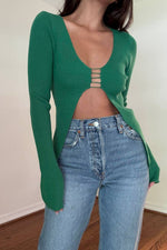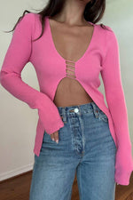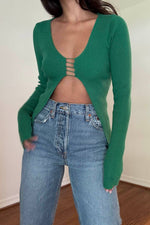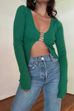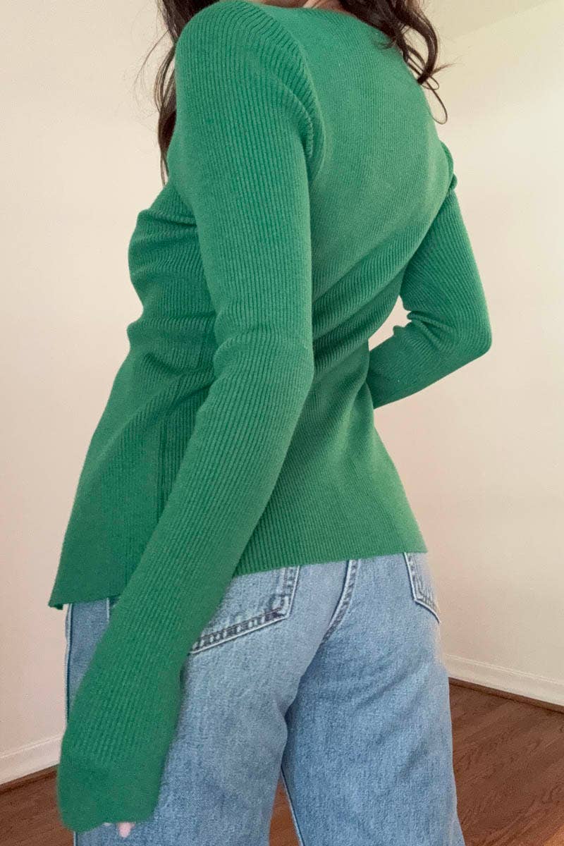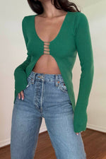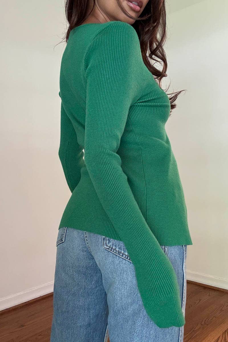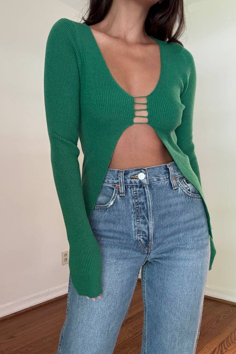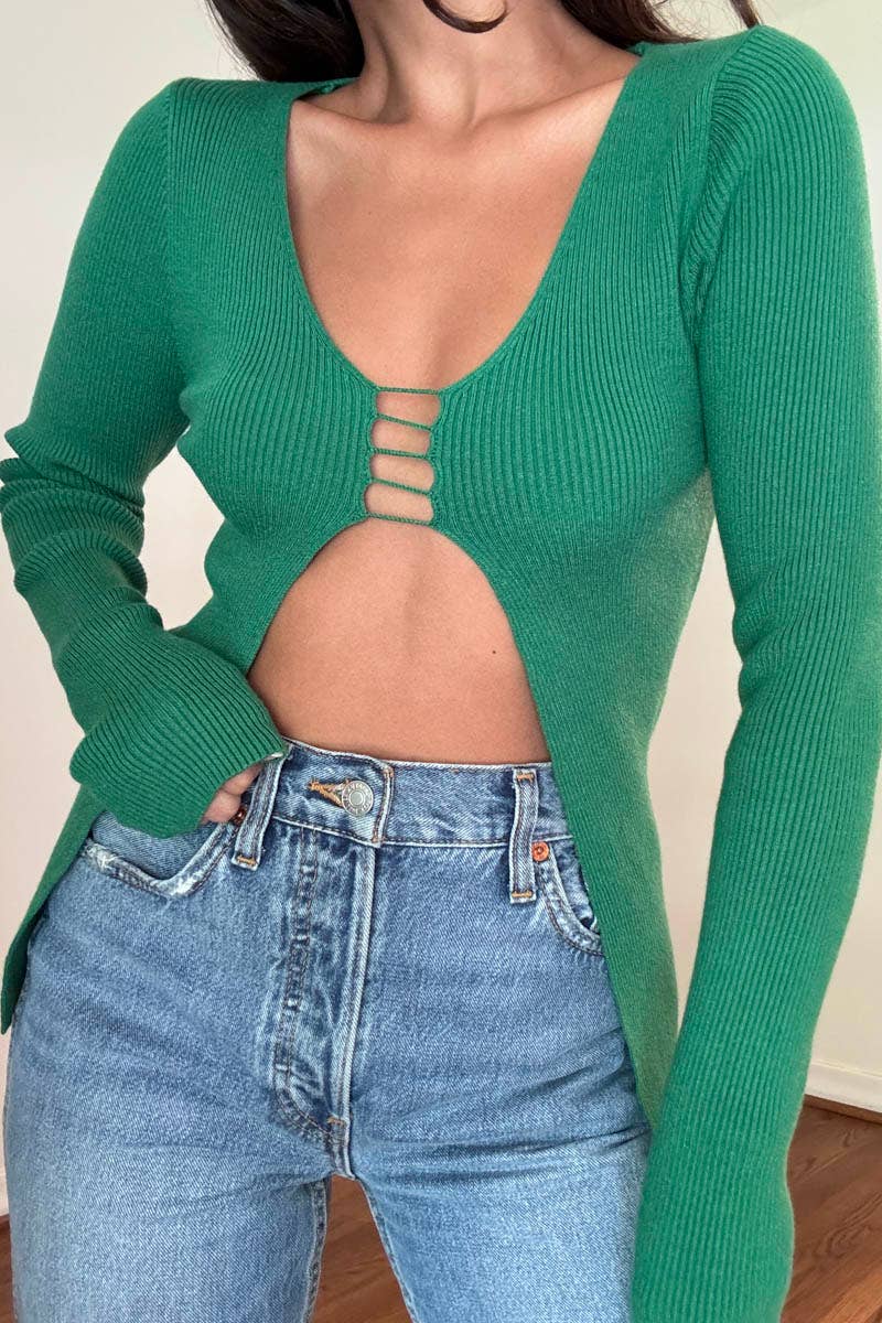 KNIT CUTOUT DETAIL LONGSLEEVE TOP