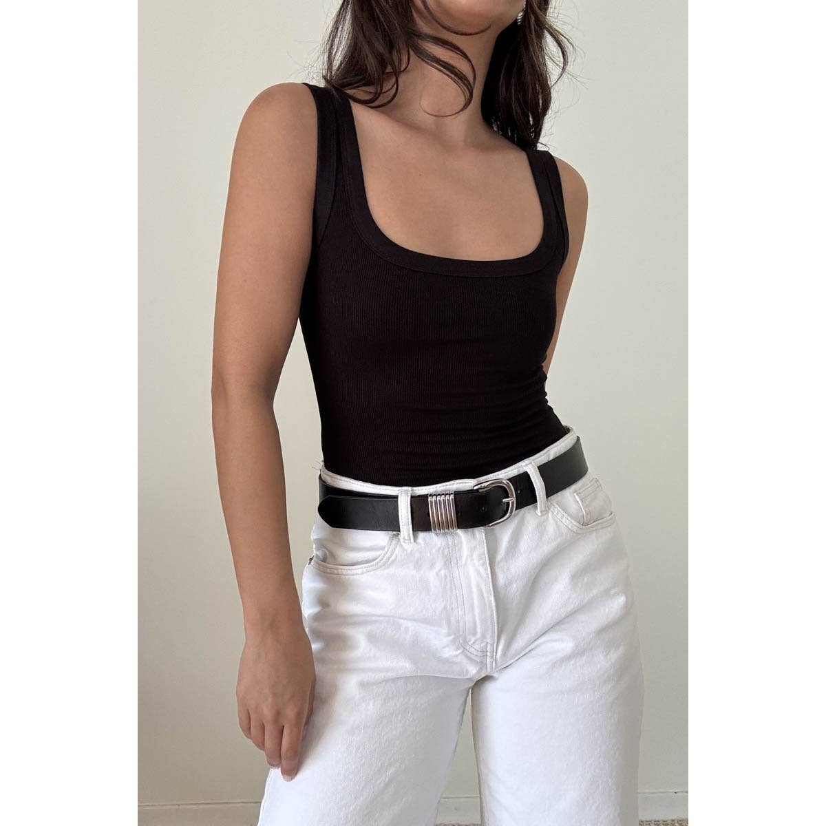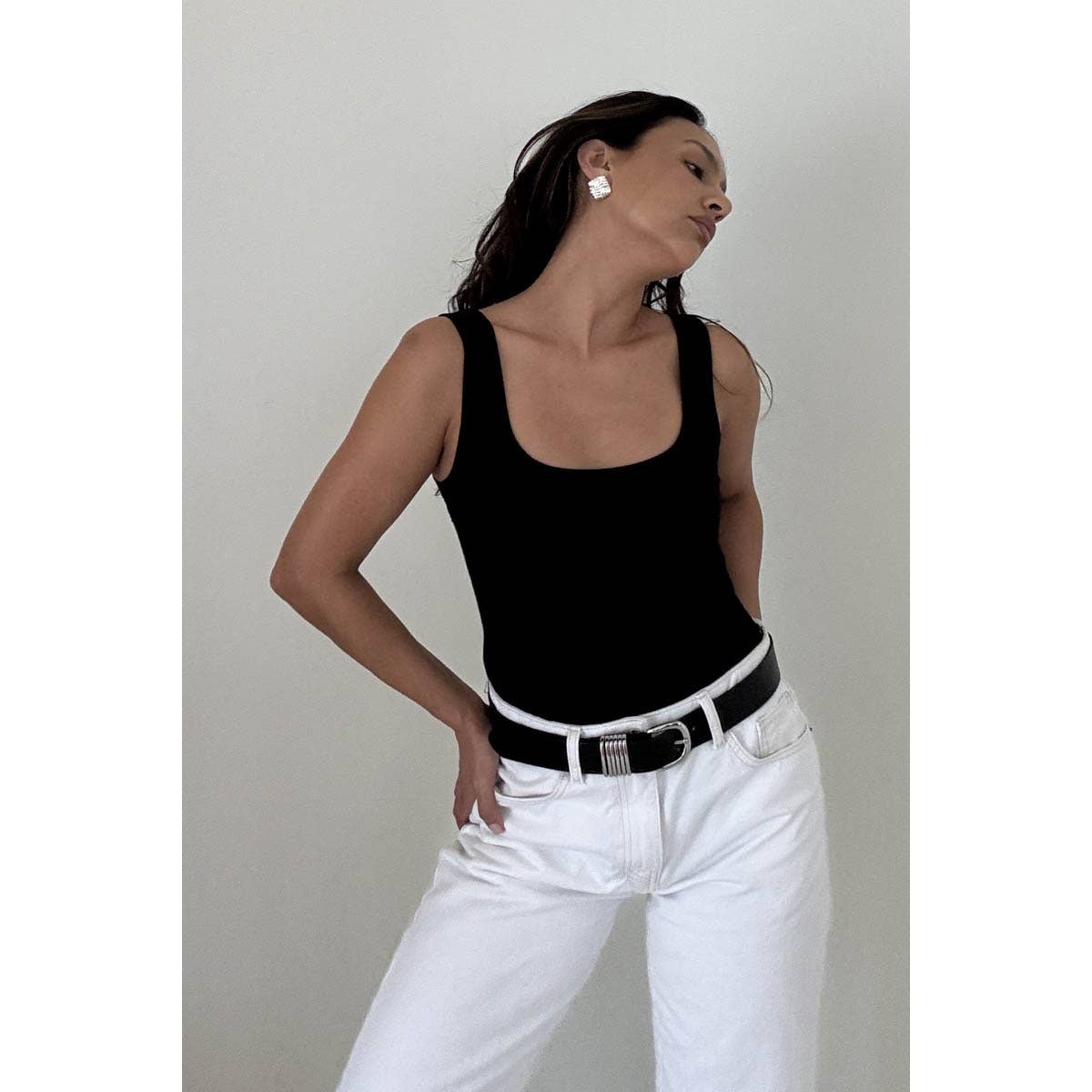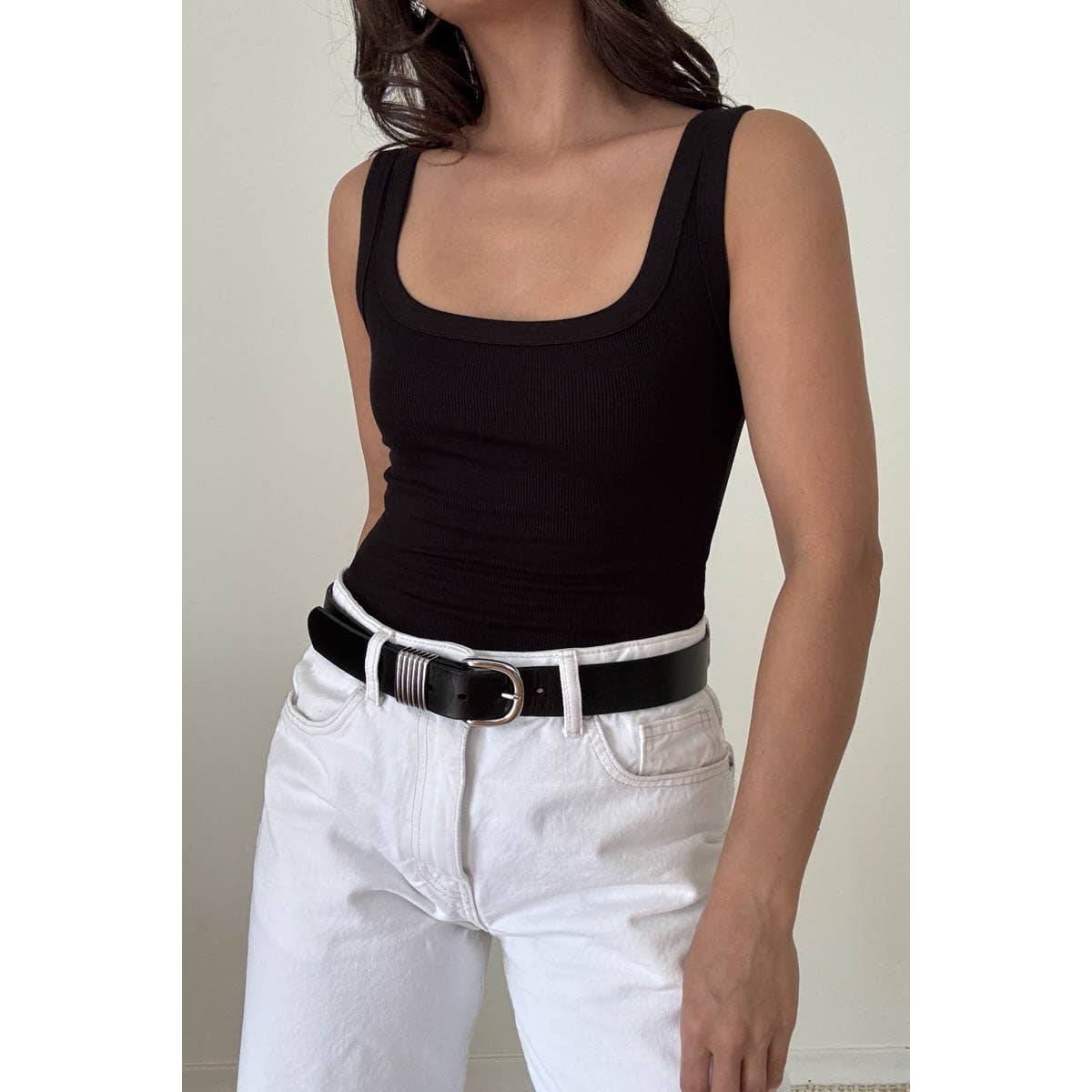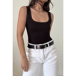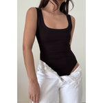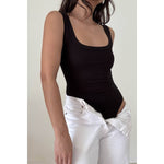 Soft Rib Scoop Neck Basic Tank Top Bodysuit