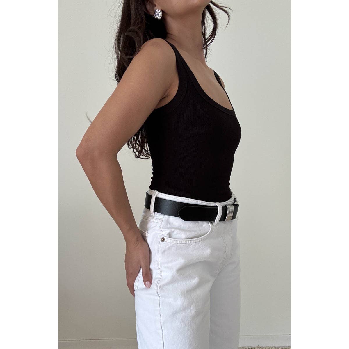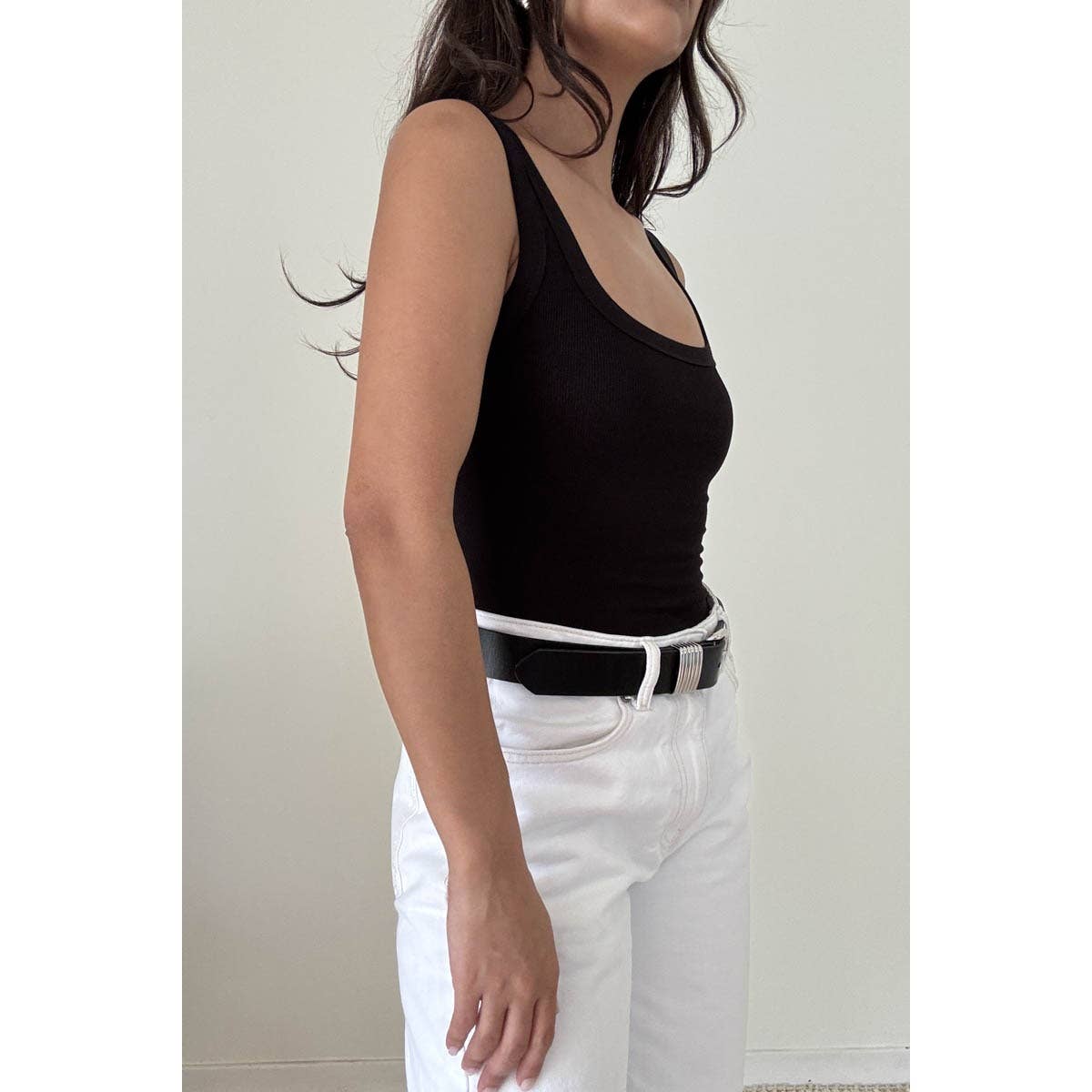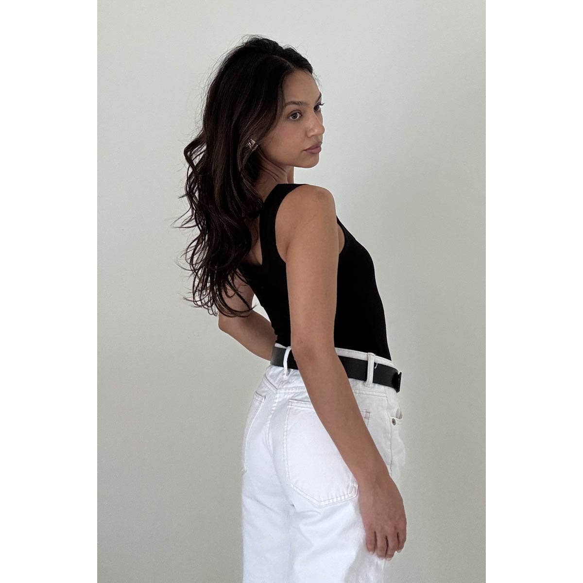 Soft Rib Scoop Neck Basic Tank Top Bodysuit