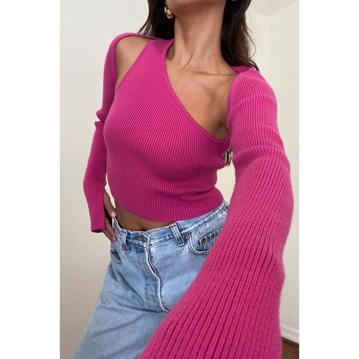 Fitted 2 Piece Bolero One Shoulder Long Sleeve Top