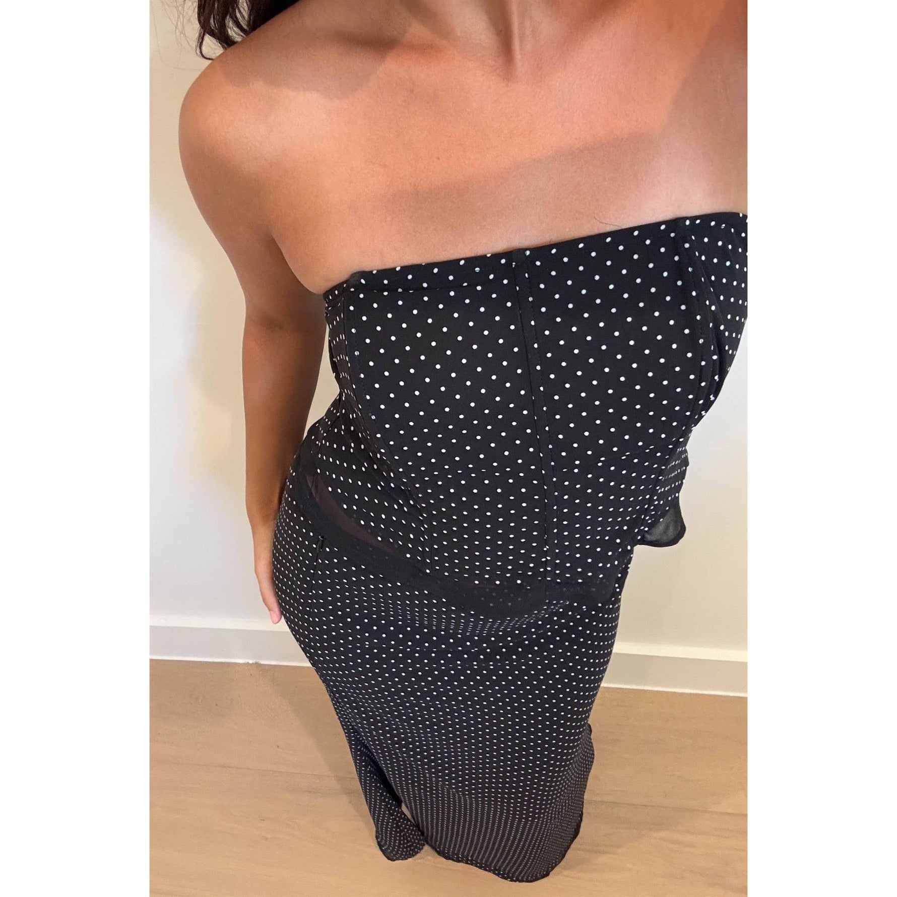 Polka Dot Strapless Boned Corset Tube Top