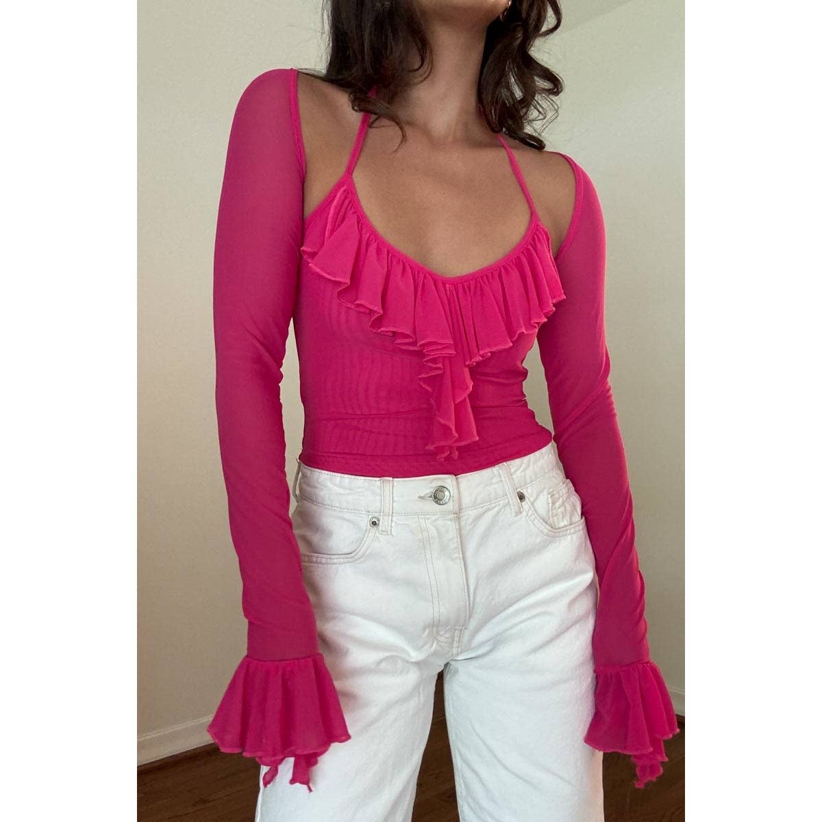 Ruffle Trim Long Sleeve Crop Top