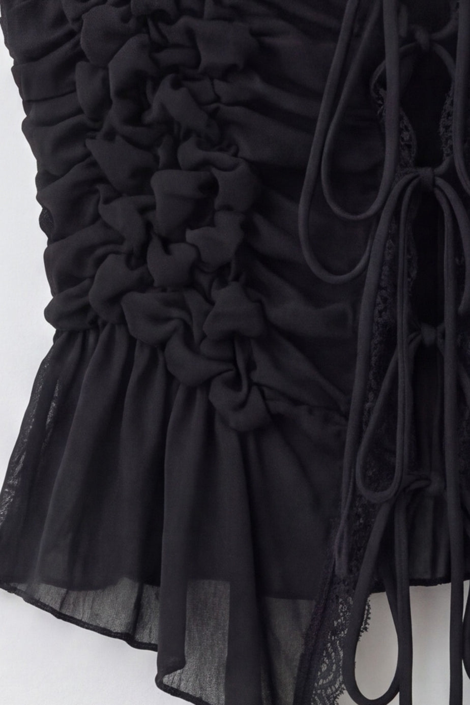 Precio unitario / porChic lace top with adjustable front tie and ruched design.