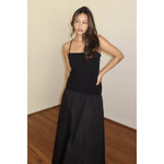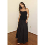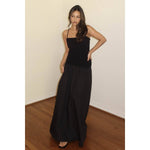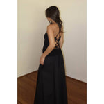 Chic black maxi dress with an elegant back tie-up detail.