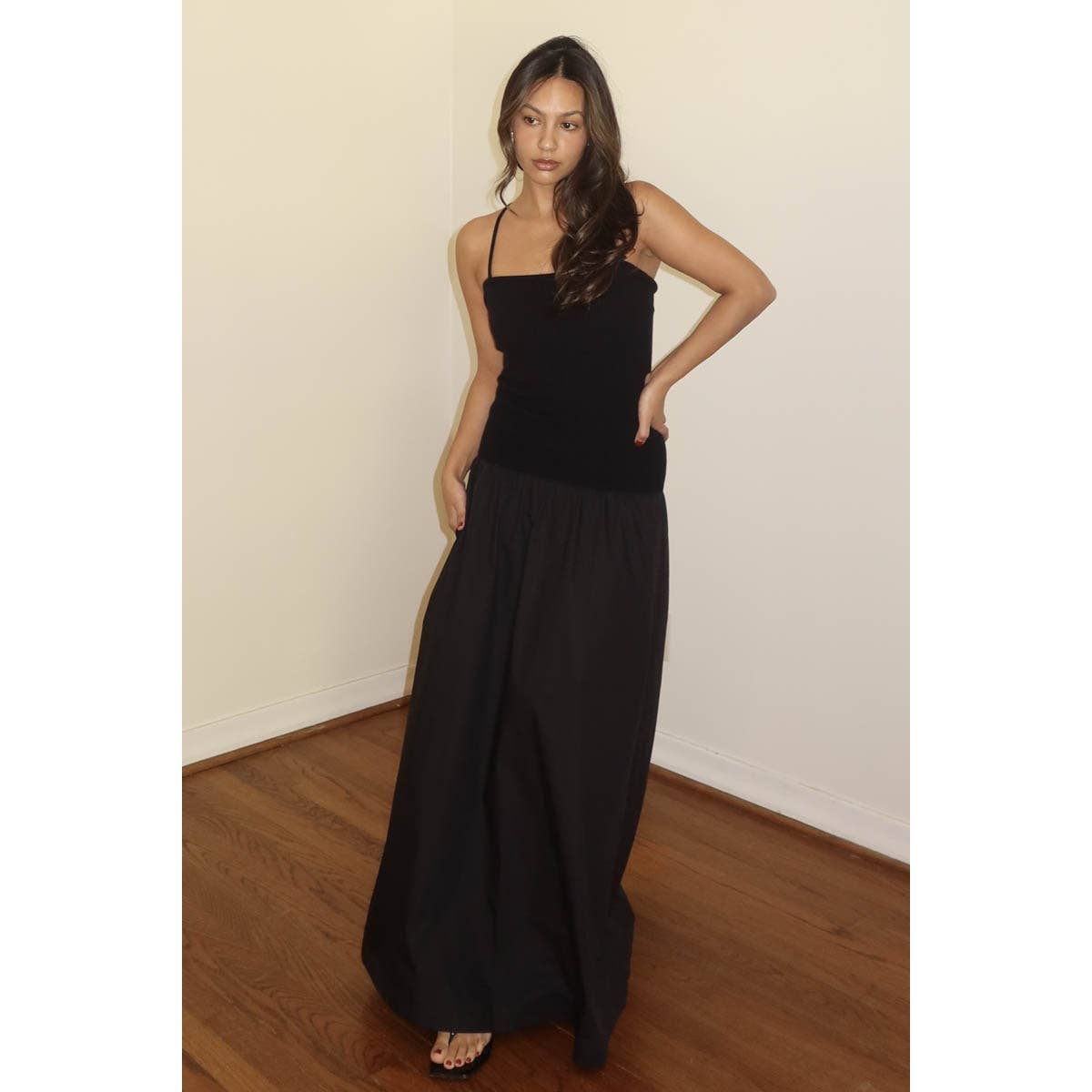 - Floor-length design