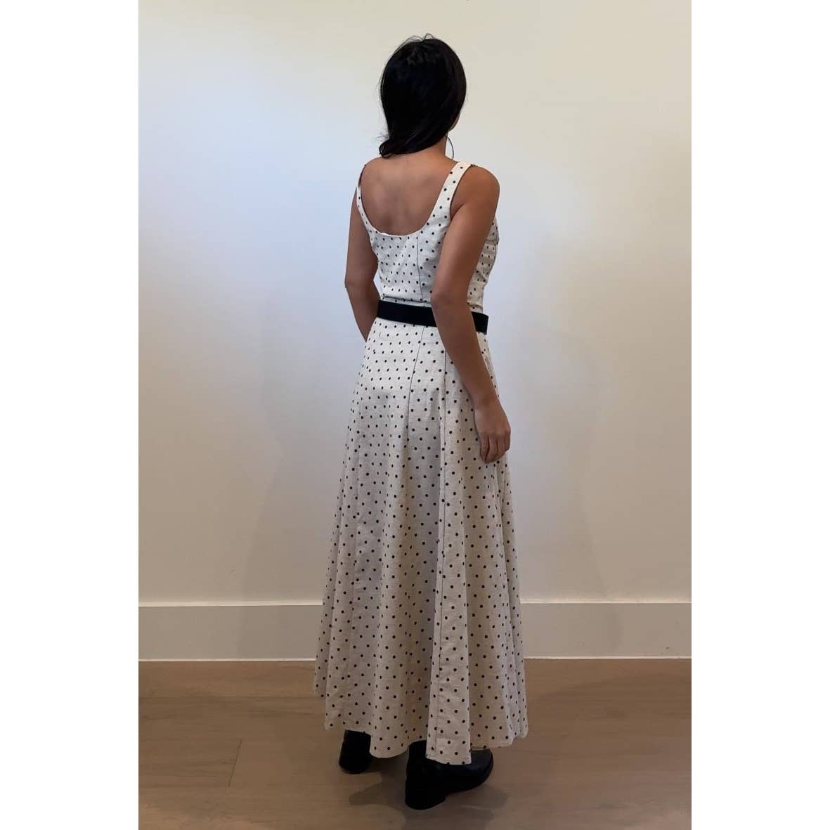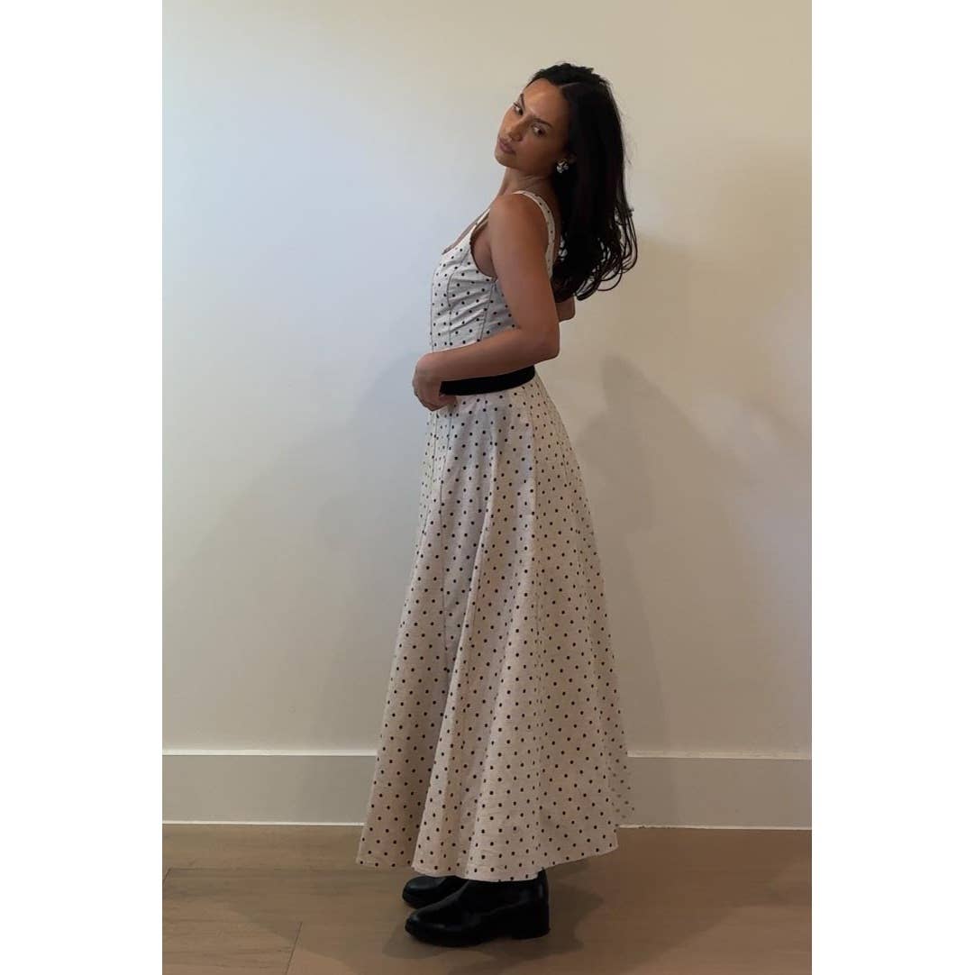 Polka Dot Printed Linen Maxi Dress