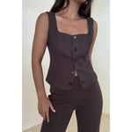 - Fitted square neck button-down vest